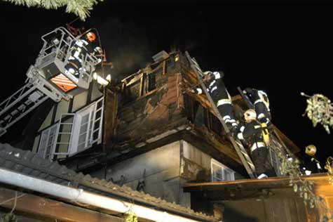 Einen Großeinsatz der Feuerwehr hatte in den Abendstunden des 14. Mai 2005 der Brand eines Einfamilienhauses der Schubertgasse10 in Perchtoldsdorf zur Folge. Das Feuer war in einer Gartenhütte, die über ein Vordach mit dem Wohnhaus verbunden ist, ausgebrochen und zunächst nicht bemerkt worden. Daher konnte es auf das Vordach sowie auf die Fassade und den Dachstuhl des Einfamilienhauses übergreifen. Zwei Personen – eine Frau und deren Sohn -, die sich im Haus aufgehalten hatten, konnten sich gerade noch rechtzeitig in Sicherheit bringen. Um 21.38 Uhr langte der Notruf in der Bezirksalarmzentrale Mödling ein, diese alarmierte die Feuerwehr Perchtoldsdorf. Als die Einsatzkräfte binnen kürzester Zeit in der Schubertgasse eintrafen, fanden sie einen Vollbrand vor. Gartenhütte, Vordach und Teile der Fassade standen lichterloh in Flammen. Der Brand wurde mit einem B-Rohr, zwei C-Rohren und einem Wasserwerfer unter schwerem Atemschutz bekämpft. Um Glutnester zu löschen, mussten große Teile der Eternitfassade abgetragen und auch das Dach geöffnet werden. Dabei gelangten auch eine Drehleiter und eine Wärmebildkamera zum Einsatz. Insgesamt standen 37 Mann der Freiwilligen Feuerwehr Perchtoldsdorf mit acht Fahrzeugen drei Stunden lang im Einsatz.Bildautor: Gottfried Bauer/BFK Mödling