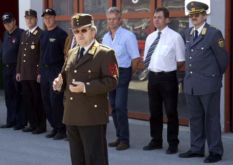 Um 14 Uhr traf die Einheit beim Feuerwehrhaus Bruck an der Leitha ein und wurde vom Repräsentanten des Bundesministeriums für Inneres, Brigadier Gerhard Sulz, vom Präsidenten des Österreichischen Bundesfeuerwehrverbandes Ing. Manfred Seidl und Niederösterreichs Landesbranddirektor Wilfried Weissgärber in Empfang genommen.