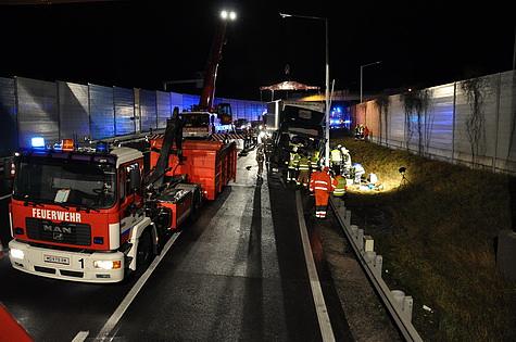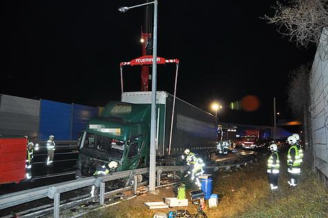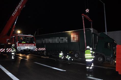Kraneinsatz nach LKW Unfall vor dem S1 Tunnel