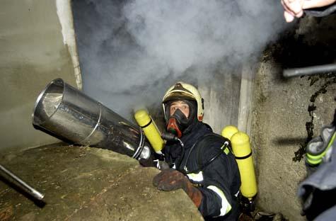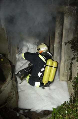 Der Hausbesitzer und Familienvater hatte gegen 4.40 Uhr bemerkt, dass der Strom im Haus ausgefallen war. Eine Ursache konnte er zunächst aber nicht finden. Wenig später veranlassten ihn krachende Geräusche, im Garten nachzusehen. Dabei entdeckte er den Brand im Keller, der nur von außen her zugänglich ist. Die alarmierte Feuerwehr Brunn am Gebirge war binnen kürzester Zeit zur Stelle – die Einsatzstelle befindet sich gleich neben dem Feuerwehrhaus. Unter schwerem Atemschutz nahmen die Einsatzkräfte mit einem C-Rohr die Brandbekämpfung auf. „Die Hitze im Keller war derartig groß, dass der Atemschutztrupp nur wenige Meter in den Raum vordringen konnten“, schildert Einsatzleiter Hauptverwalter Fritz Gollob. Die kleinste unbedeckte Hautstelle genügte, um sich Verbrennungen zuzuziehen. Außerdem hatte die Betondecke durch die Hitzebeaufschlagung schweren Schaden genommen, Deckenbetonsteine waren fast flächig geborsten und teilweise abgestürzt. Der Einsatzleiter entschied daher, den Keller mit Mittelschaum zu fluten. Diese Maßnahme führte binnen kürzester Zeit zum Löscherfolg. Allerdings war die vom Mauerwerk abgestrahlte Hitze noch immer enorm. Erst nach längerer Belüftung mit Hochleistungslüftern gelang es, den Raum abzukühlen. In dem völlig zerstörten Kellerraum war unter anderem die Technik für ein Swimmingpool, Hauswasserwerk und ein Stromverteilerkasten untergebracht. Die Statik des über dem Kellerraum errichteten Wintergartens muss nun von einem Experten überprüft werden. Durch die Zerstörung des E-Hauptverteilers ist die Villa derzeit ohne Strom. Die Freiwillige Feuerwehr Brunn am Gebirge war mit 18 Mann und fünf Fahrzeugen im Einsatz.Bildautor: Gottfried Bauer/Pressestelle BFK Mödling