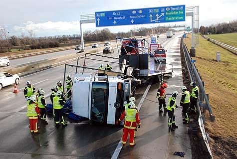 Starke Windböen fegten am 20. Jänner 2012 über den Bezirk Mödling. Kurz vor 13:30 Uhr erfassten diese ein Ungarisches Kleinlastwagengespann und kippten diesen auf der Südautobahn A2 in Fahrtrichtung Graz kurz vor dem Knoten Guntramsdorf um.