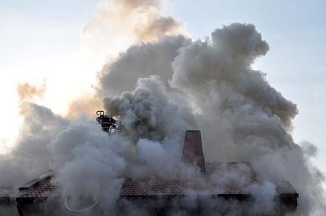 Durch den innerhalb der Holzriegelwände fortgeschrittenen Brandverlauf kam es zu einer Durchzündung, welche den Dachstuhl zur Gänze erfasste.