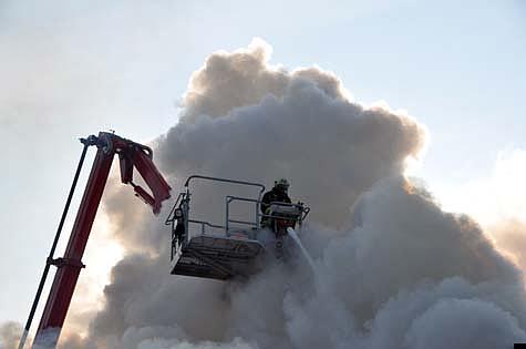 Als weiteres Sondergerät wurde zur Unterstützung der Feuerwehr ein 15 Tonnen Bagger mit Sondiergreifer angefordert, um die Dachhaut zu entfernen. Durch die Baumaschine konnte eine Entlastung der Einsatzkräfte erreicht werden.