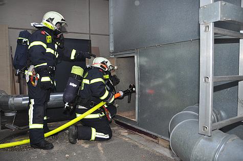 Nach Abschalten der Motoren innerhalb der Siloanlage wurde von zwei Atemschutztrupps der Feuerwehren Biedermannsdorf und Laxenburg begonnen, den Brandherd zu lokalisieren. Mit Hilfe einer Wärmebildkamera konnte das in Brand stehende Material schnell entdeckt, und mit gezieltem Einsatz von Wasser die Brandbekämpfung begonnen werden.