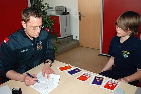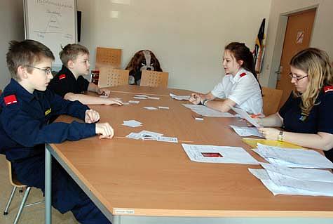 Für die jüngsten der Feuerwehrjugend im Alter von 10 bis 12 Jahren geht es im sogenannten Wissenstestspiel um das spielerische Erlernen der Grundlagen des Feuerwehrwesens.