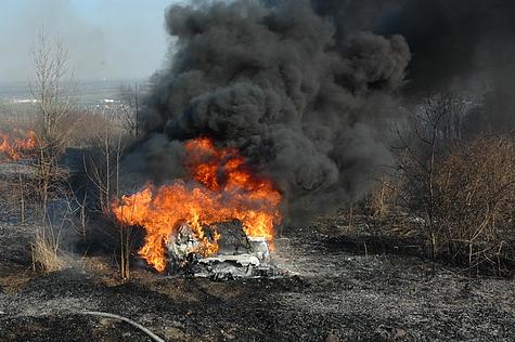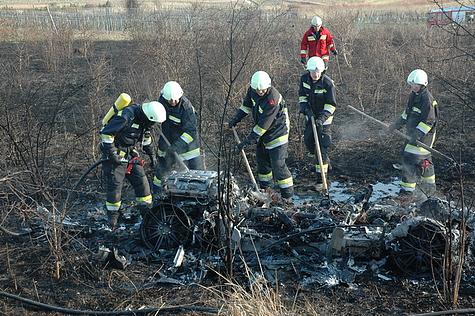 Die Rauchsäule war für die Einsatzkräfte bei der Anfahrt über einige Kilometer zu sehen. Beim Eintreffen der Feuerwehr standen das Fahrzeug sowie zirka 500 m² des Feldes im Vollbrand.