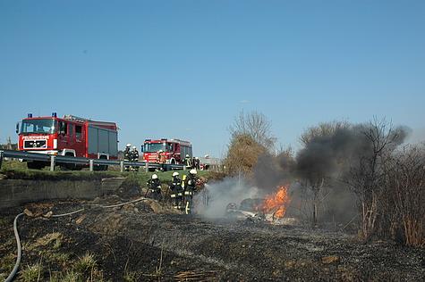 Verkehrsunfall eines PKW's löst Vollbrand eines Feldes aus, zwei Feuerwehren im Einsatz