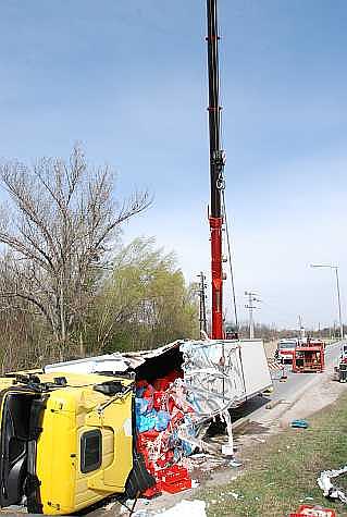 Gemeinsam mit den Einsatzkräften der Feuerwehr Achau konnte die Straße gesäubert werden. Der LKW wurde durch das Kranfahrzeug am Fahrbahnrand abgestellt.