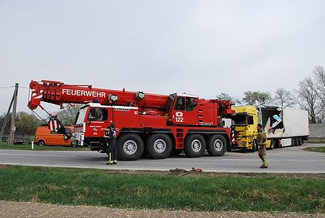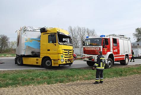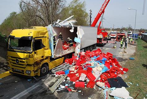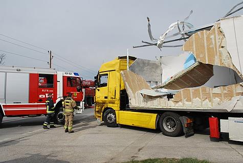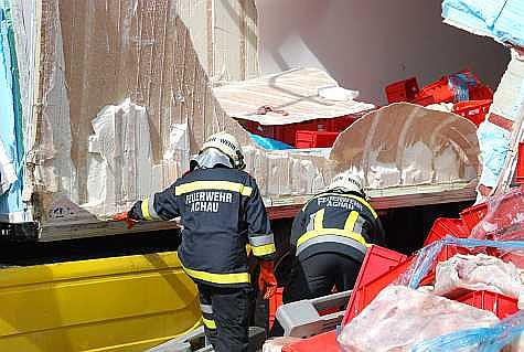 Der Fahrer und sein Beifahrer konnten durch vorbeifahrende beherzt Fahrzeuglenker aus dem Führerhaus befreit und erstversorgt werden.