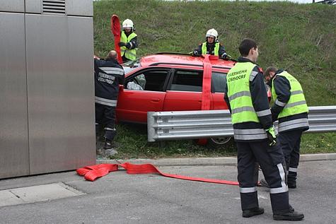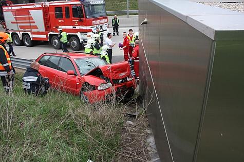 Zu einem Verkehrsunfall kam es am Nachmittag des 14. April 2012 auf der Wiener Außenring Schnellstraße (S1). Aus bisher unbekannter Ursache kam ein PKW von der Fahrbahn ab und prallte frontal gegen das Gebäude einer neben der Autobahn befindlichen Pumpstation.