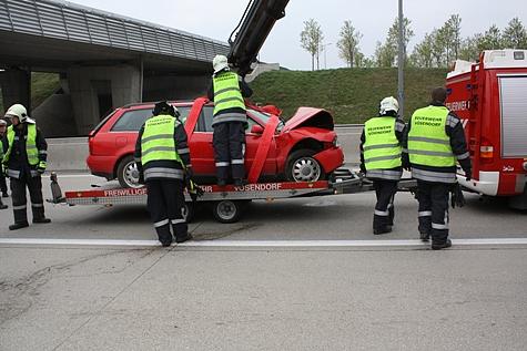 Nach Abtransport der Verletzten und abgeschlossener Unfallaufnahme der Polizei, konnte die Feuerwehr mit der Bergung des Fahrzeuges beginnen. Mit Hilfe des Ladekranes des schweren Rüstfahrzeuges wurde der PKW zurück auf die Fahrbahn gehoben und in weiterer Folge von der Autobahn abtransportiert.