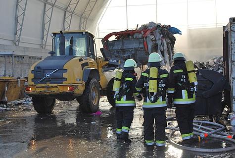 Aus unbekannter Ursache geriet in einer Halle gelagerter Sperrmüll in Brand. In weiterer Folge geriet auch die Konstruktion der Halle in Brand.