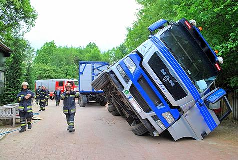 Umgestürzter LKW im Schützengraben