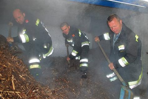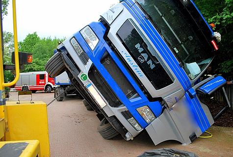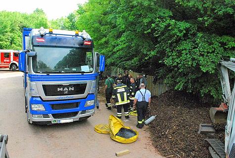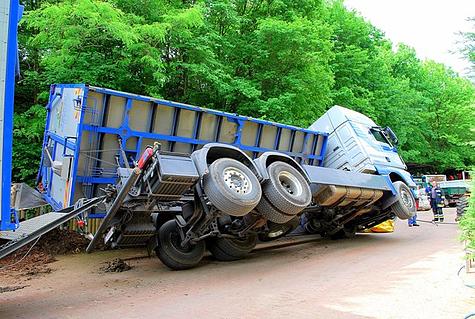 Beim Entladen von Rindenmulch auf einem Lagerplatz im Schützengraben kippte am 14. Mai 2012 ein LKW seitlich um.