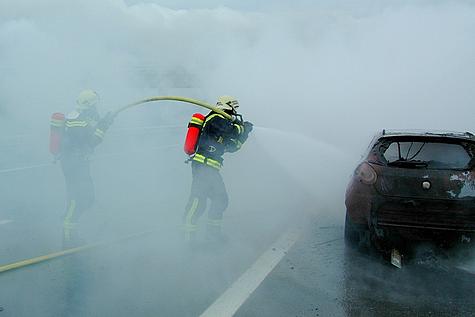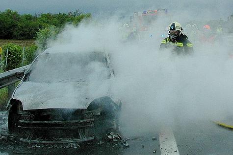 Mehrere Notrufe gingen am 13. Juli 2012 bei der Bezirksalarmzentrale ein, dass auf der A3, Fahrtrichtung Burgenland ein Auto im Vollbrand steht.