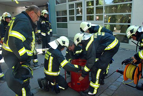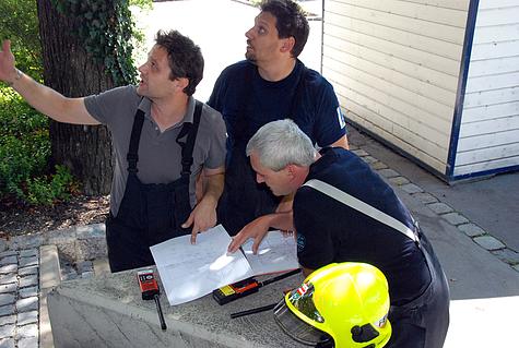 Bei einer Lagebesprechung stellte sich heraus, dass sich neben einer Gastherme auch eine Traffostation im Keller befand. Deshalb wurde das Energieunternehmen zum Einsatz beordert.