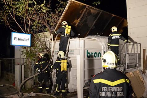Zu einem Containerbrand kam es in der Nacht von 7. auf 8. November 2012 im Industriegebiet von Brunn am Gebirge. Ein Passant bemerkte den in Brand geratenen 40m³ Abfallcontainer und wählte den Feuerwehrnotruf 122.