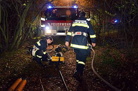 Die Einsatzadresse war in einem Waldstück und daher nicht leicht für die Einsatzfahrzeuge zu erreichen. Beim Eintreffen am Unglücksort kam der Feuerwehr eine Frau entgegengelaufen und teilte mit, dass sich noch eine weitere Frau im Gebäude befindet.