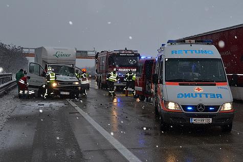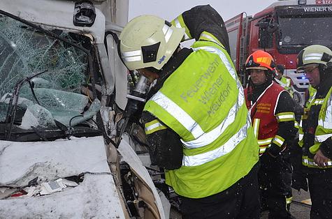 Zu einem schweren LKW Unfall kam es in den Morgenstunden des 12. Februar 2013 in Wiener Neudorf. Aus bisher unbekannter Ursache fuhr ein Möbeltransporter kurz vor der Ausfahrt Wiener Neudorf in Fahrtrichtung Graz auf einen anderen LKW auf. Der Fahrer des Möbeltransporters wurde dabei verletzt und in seinem Führerhaus eingeklemmt.