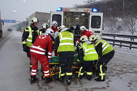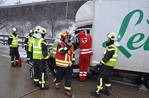 Mit Hilfe eines Spineboard wurde der Fahrer durch die Feuerwehr aus seinem Führerhaus gerettet und um 8:20 Uhr an das Rote Kreuz übergeben.