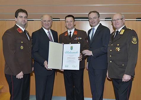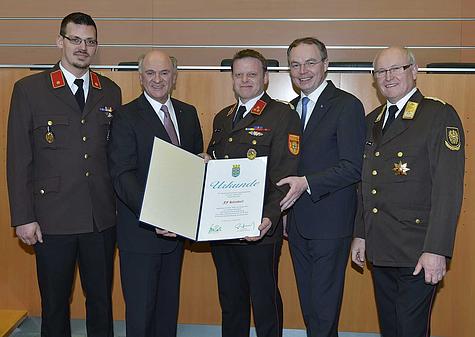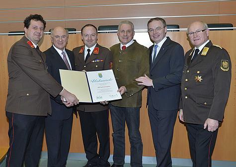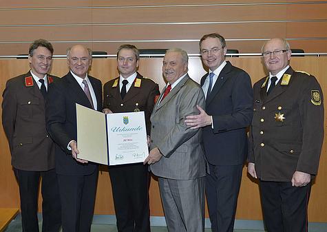 Landesfeuerwehrkommandant KommR Josef Buchta führte aus: „Wir setzen mit diesen Urkunden ein sichtbares Zeichen und sagen damit Danke für die erbrachten Leistungen der Feuerwehrkameraden. Auch in Zukunft werden die Feuerwehren gemeinsam mit den Kommunen ihre vielfältigen Aufgaben meistern."