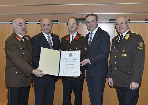 Landeshauptmann Dr. Erwin Pröll überreichte am Freitag, 15. Februar 2013, im Sitzungssaal des NÖ Landtages in St. Pölten Jubiläumsurkunden an insgesamt 70 niederösterreichische Feuerwehren, die heuer ihr 100-, 125-, 140- oder 150-jähriges Bestehen feiern.