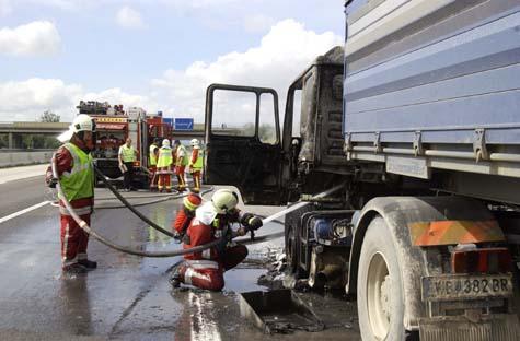 Zu einem Lkw-Brand rückte die Freiwillige Feuerwehr Wiener Neudorf am Vormittag des 23. August auf die Südautobahn aus.