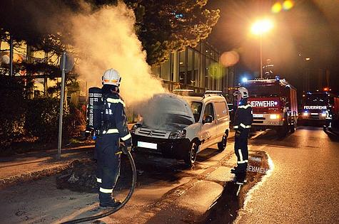 Beim Eintreffen der Einsatzkräfte rauchte es stark aus dem Motorraum. Einsatzleiter HBI Fritz Gollob ließ einen Atemschutztrupp ausrüsten.