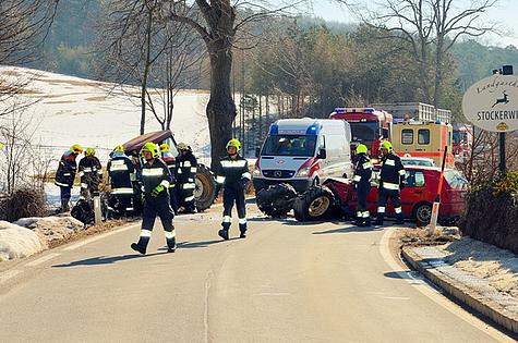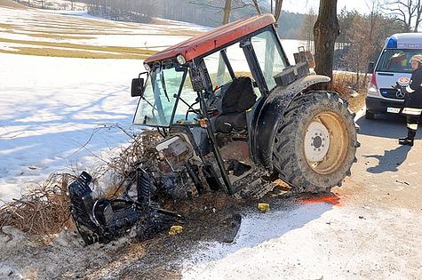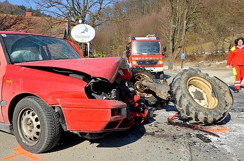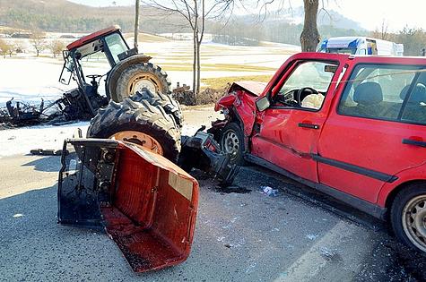 Schwerer Verkehrsunfall mit einem Traktor und PKW