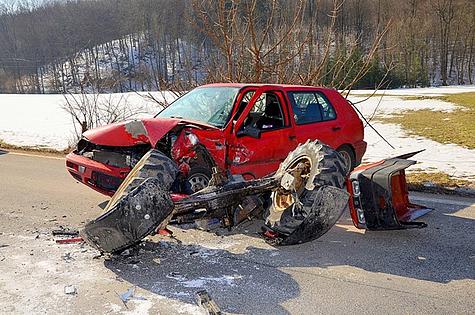 Eine 23jährige Lenkerin verlor aus bislang ungeklärten Umständen die Herrschaft über ihren VW Golf und prallte mit voller Wucht mit einem entgegenkommenden Traktor zusammen. Der Aufprall war so heftig, dass die Vorderachse des Traktors ausgerissen wurde.