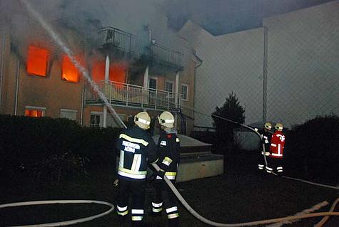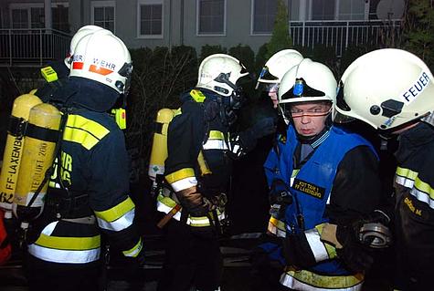 Da der Brand schon sehr fortgeschritten war, entschied Einsatzleiter ABI Christian Giwiser, die Feuerwehren Biedermannsdorf, Laxenburg und Münchendorf hinzuzuziehen. Die Flammen schlugen bereits aus der Wohnung im 1. Stock und griffen auch schon auf die darüber liegende Wohnung sowie den Dachstuhl an.