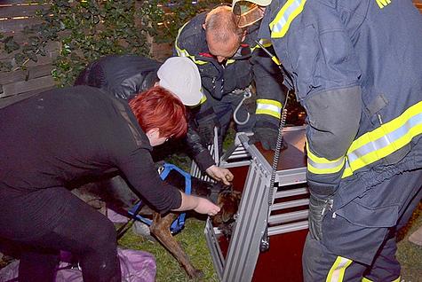 Die Feuerwehrmänner brachten den zweijährigen Dogge-Mischling ins Freie und gemeinsam mit dem Roten Kreuz begannen die Wiederbelebungsmaßnahmen durch eine Sauerstoffeinheit.