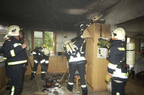 Nachbarn informierten um 10.40 Uhr über Notruf die Feuerwehr-Bezirksalarmzentrale Mödling: Aus dem Einfamilienhaus drang Rauch. Die alarmierte Freiwillige Feuerwehr Brunn fand das Haus verlassen vor, die Einsatzkräfte konnten aber über eine angelehnte Terrassentür rasch in das Gebäude eindringen. Die Räume waren derart verqualmt, dass unter schwerem Atemschutz vorgegangen werden musste. Der Brand in der Küche konnte mit einem Hochdruckstrahlrohr und einer Kübelspritze rasch gelöscht werden. Der Brand ist offensichtlich von einem Mikrowellenherd ausgegangen. Kurz vor Brandausbruch war die Mikrowelle von Hausinsassen in Betrieb genommen worden, man wollte Reis zubereiten und stellte die Zeituhr auf 10 Minuten. Dann verließen die Personen kurz das Haus. Als sie zurück kamen, stand die Feuerwehr vor der Tür... Ein Hund, der sich in der Garage befunden hat, kam durch den Brand nicht zu Schaden. Einer Katze dürfte rechtzeitig die Flucht vor dem beißenden Brandrauch gelungen sein. Beim Brand wurde die Küche des Hauses schwer beschädigt, durch Ruß und Rauch sind aber auch sämtliche Wohnräume schwer in Mitleidenschaft gezogen worden. Die Freiwillige Feuerwehr Brunn war mit sechs Fahrzeugen und 28 Mann unter Einsatzleitung von Hauptverwalter Fritz Gollob im Einsatz.Bildautor: Gottfried Bauer/Pressestelle BFK Mödling