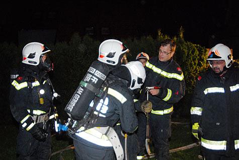 Kurz nach 21 Uhr rückte daraufhin die Freiwillige Feuerwehr Brunn am Gebirge mit drei Fahrzeugen zu dem Dachstuhlbrand aus. Nach dem Eintreffen wurde die Lage durch den Einsatzleiter erkundet. Die einzige sinnvolle Zugangsmöglichkeit zu dem Brand befand sich im Garten hinter dem Haus über eine Leiter.