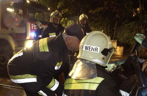Mit umfangreichen hydraulischen Rettungswerkzeugen (Schere, Spreizer und Stempel) gelang es schließlich, die verformten Autoteile so weit zu entfernen, dass der Schwerverletzte aus dem Fahrzeug geborgen werden konnte.