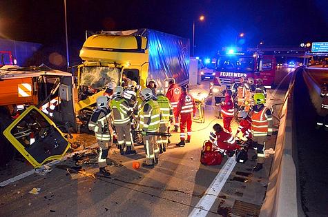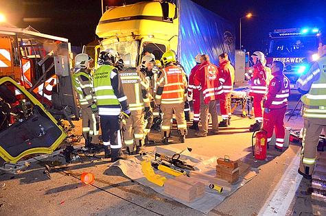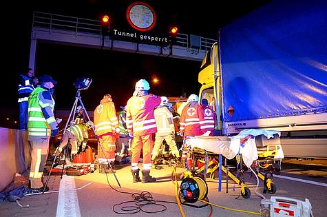 Die ASFINAG führte im Tunnel Vösendorf Wartungsarbeiten durch und musste deshalb die zweite Fahrspur sperren. Dies erfolgte mittels LKW und Anhänger als plötzlich ein ungarischer Lastwagen auf diesen auffuhr.