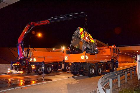 Der LKW der ASFINAG konnte die Unfallstelle selbstständig verlassen. Der ungarische LKW wurde mit dem Ladekran des schweren Rüstfahrzeuges sowie der Abschleppstange von der Schnellstraße verbracht.