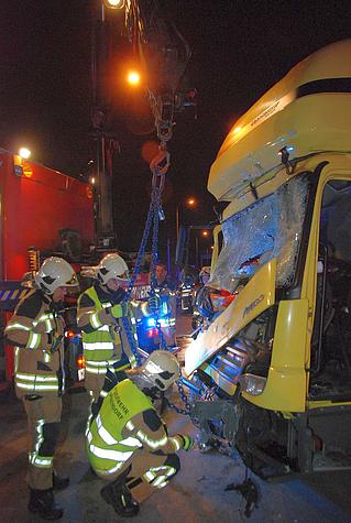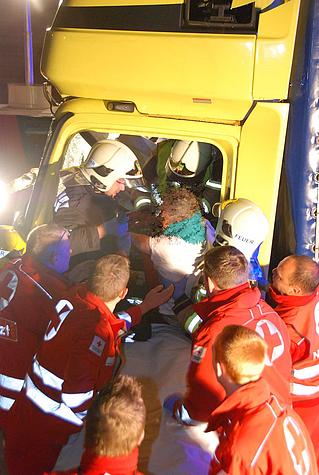 Feuerwehr befreit LKW Lenker