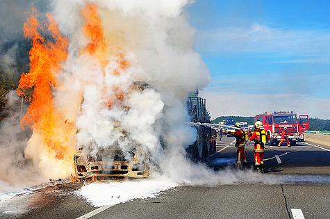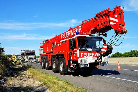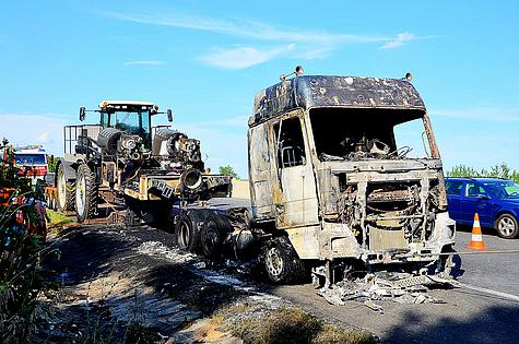 Kraneinsatz nach LKW Brand auf der A21
