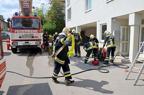 Wenige Minuten nach der Alarmierung rückten die Einsatzkräfte unter der Einsatzleitung von ABI Franz Jezek zum Einsatzort aus. An der Einsatzadresse rüsteten sich zwei Atemschutztrupps aus.