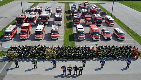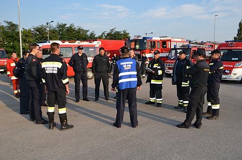 Nach der Versorgung aller Teilnehmer mit einem Frühstück, verlegten sich die 154 Feuerwehrmitglieder mit insgesamt 32 Fahrzeugen kurz nach 8 Uhr früh in die Landesfeuerwehrschule nach Tulln.