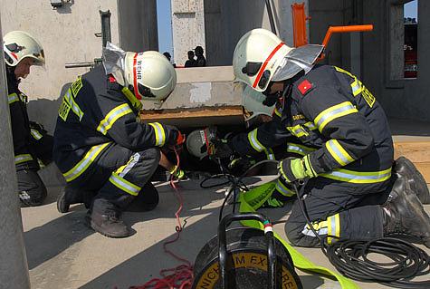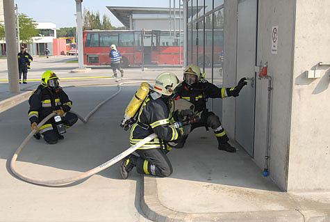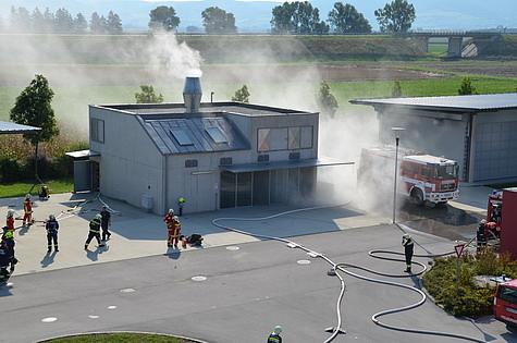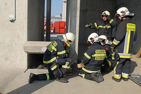 Nach Ankunft aller vier Züge in der Feuerwehrschule wurde jedem Zug ein separates Übungsobjekt durch Bereitschaftskommandant HBI Kurt Raitmar zugeordnet. Der 1. Zug wurde bei einem Brand eines Geschäftshauses mit mehreren vermissten Personen eingesetzt. Für den 2. Zug galt es, mehrere Personen bei einem Bauernhofbrand zu retten, dabei musste auch eine abgestürzte Person aus einem Silo sowie ein eingebrochenes Pferd aus dem Stall gerettet werden.
