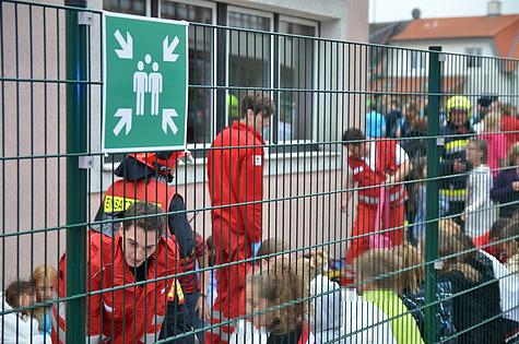 Parallel dazu wurden auch die 157 Kinder der angrenzenden Volksschule in Sicherheit gebracht. Am Sammelplatz der Mittelschule wurden zahlreiche Schüler und Lehrer vom Personal des bereits anwesenden Rettungsdienstes einer Sichtung unterzogen. Zusätzlich wurden weitere Rettungskräfte alarmiert. Insgesamt wurden 60 Personen mit zahlreichen Rettungswagen und Mannschaftstransportfahrzeugen der Feuerwehr zur Kontrolle in die umliegenden Krankenhäuser eingeliefert.