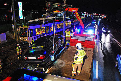 Parallel dazu wurde eine Abschaltung der Oberleitung veranlasst sowie die Fachkräfte der Wiener Lokalbahn verständigt. Nach Erdung der Oberleitung in Fahrtrichtung Vösendorf wurde der PKW mittels Kran angehoben, auf die Ladefläche des Wechselladefahrzeuges verwahrt und an einem geeigneten Ort gesichert abgestellt.