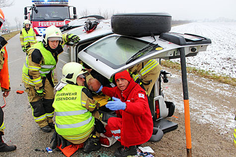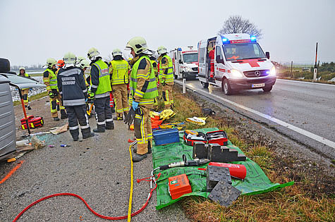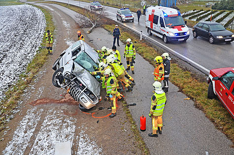Nachdem durch die Feuerwehrmänner die Zugangsöffnung im Unfallauto erstellt war, konnte nach Absprache mit der Rettung der 82jährige Mann mittels Spineboard befreit werden. Durch die anwesende Notarzt-Besatzung erfolgte die weitere Behandlung des Verunfallten.