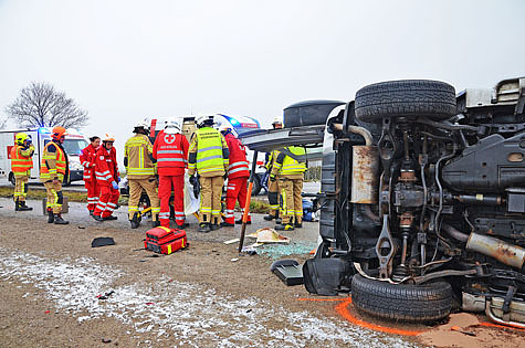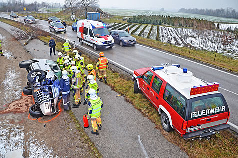 Beim Eintreffen der Feuerwehr war bereits die Unfallstelle durch die Polizei abgesichert.