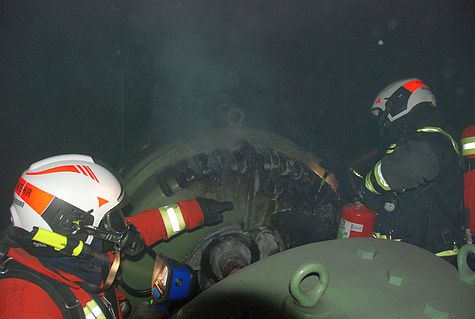 Der Brand konnte an einem Synchrongenerator ausfindig gemacht werden. Dieser Generator produziert 500 kVA für die Eigenversorgung des Betriebes. Mit gezielten Wasserstößen war der Brand schnell unter Kontrolle gebracht.