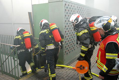Da sich im Keller Großstromgeneratoren und Aggregate befinden, musste zuerst sichergestellt werden, dass sämtliche Stromleitungen abgeschalten sind, ehe der Atemschutztrupp mit der Brandbekämpfung beginnen konnte.