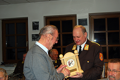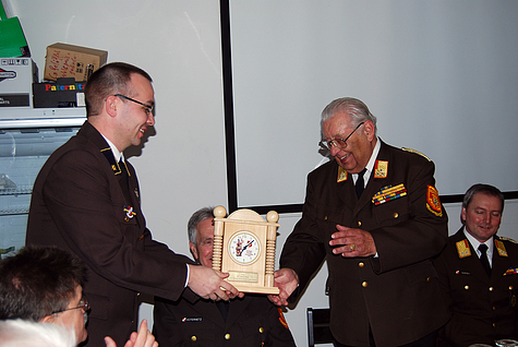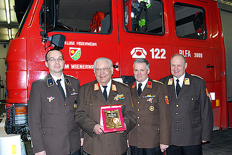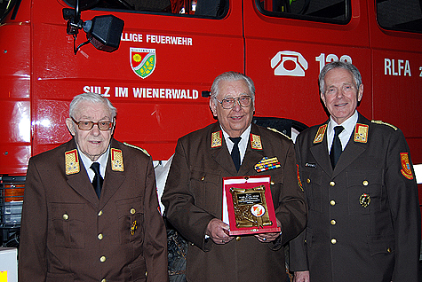 Am 1. Juni 1953 trat Florian Breis der Feuerwehr Breitenfurt bei, nach seiner Hochzeit übersiedelte er und wechselte zur Feuerwehr Sulz. Im Jahr 1981 wurde er zum Kommandant der Feuerwehr Sulz gewählt, und bekleidete in weitere Folge einige Positionen im Abschnitts- bzw. Bezirksfeuerwehrkommando - u.a. als Kommandant der 14. FuB Bereitschaft, als Bezirkssachbearbeiter für Ausbildung und als Mitglied im Technischen Ausschuß. 1986 wurde Florian Breis Bezirksfeuerwehrkommandant Stellvertreter und ab dem Jahr 1994 hatte er die Position des Bezirksfeuerwehrkommandanten über. Aus Sicht der Einsatzorganisation und Koordination war für ihn die Hochwasserkatastrophe 1994 im Bezirk Mödling einer der größten Einsätze; für ihn prägend war der Flugzeugabsturz in Grub. Das Thema "Ausbildung" stand bei Florian Breis ständig im Vordergrund. Es war ihm ein großes Anliegen, dass bereits die Feuerwehrjugend eine fundierte Ausbildung erhält. Das Schlagwort der "Improvisation" in Verbindung mit geringen und eigenen Feuerwehrmitteln Einsätze zu bewältigen hatte für ihn hohen Stellenwert. In seiner Amtszeit als Feuerwehrkommandant war er für den Bau von zwei Feuerwehrhäusern in Sulz verantwortlich. Im Jahr 1999 legte er aus Altersgründen dieses Amt zurück. Florian Breis ist auch heute noch bei größeren Einsätzen und besetzt die Zentrale der Feuerwehr Sulz. Bei den wöchentlichen Treffen im Feuerwehrhaus ist er auch regelmäßig anzutreffen. Auch sein Interesse an den aktuellen Verläufen des Feuerwehrwesens ist immer noch sehr groß. Florian Breis berichtet, dass er sich sehr über die Wertschätzung aller Feuerwehrkameraden im Bezirk Mödling, auch nach seiner Funktionszeit als Bezirksfeuerwehrkommandant, freut - er ist auch heute noch ein regelmäßig eingeladener und gerngesehener Gast bei vielen Veranstaltungen. Dies beweist auch die Tatsache, dass zu seinem 80. Geburtstag Vizebürgermeister Ing. Mirko Bernhard, Alt-Bezirksfeuerwehrkommandanten ELR wHR Dr. Karl Steininger und ELFR Franz Koternetz und Stellvertretend für alle aktiven Mitglieder Bezirksfeuerwehrkommandant-Stv. BR Christian Giwiser anwesend waren. Florian Breis bekam vom Bezirksfeuerwehrkommando eine Bronzene Plakette überreicht. Der Jubilar erhielt weiters Stellvertretend von V Michael Pieler eine Uhr mit einem Abbild des Heiligen Florian und des Korpszeichens. Weiters wurde an diesem feierlichen Tag noch ein zweiter Geburtstag gefeiert. EOBM Franz Schwaiger wurde ebenso 80 Jahre alt und erhielt Stellvertretend von OBR (LFK) Fritz Strutzenberger ebenfalls eine Feuerwehruhr aus Holz.Bildautor: Michael Wagner/Pressestelle BFK Mödling