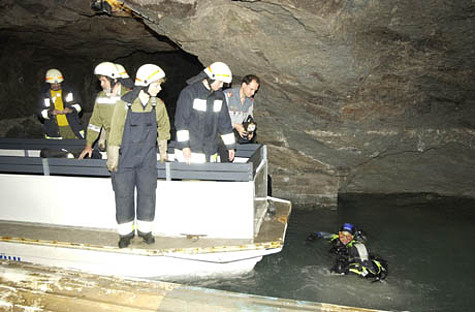 Am Einsatzort in der Seegrotte bot sich den Feuerwehrkräften folgende Situation dar: Am Ende einer Rundfahrt am unterirdischen See - der Höhepunkt jeder Führung durch das Schaubergwerk - war ein mit 28 Passagieren und dem Bootsführer besetztes Rundfahrtsboot ca. 100 Meter von der Anlegestelle entfernt gekentert. Es trieb mit dem Rumpf nach oben im Wasser. Ein Großteil der Insassen hatte sich retten und durch das nur ca. 1,2 bis 1,5 m tiefe Wasser zur Anlegestelle waten können. Durchnässte Personen kamen den Einsatzkräften entgegen. Mehrere Personen waren vermisst.